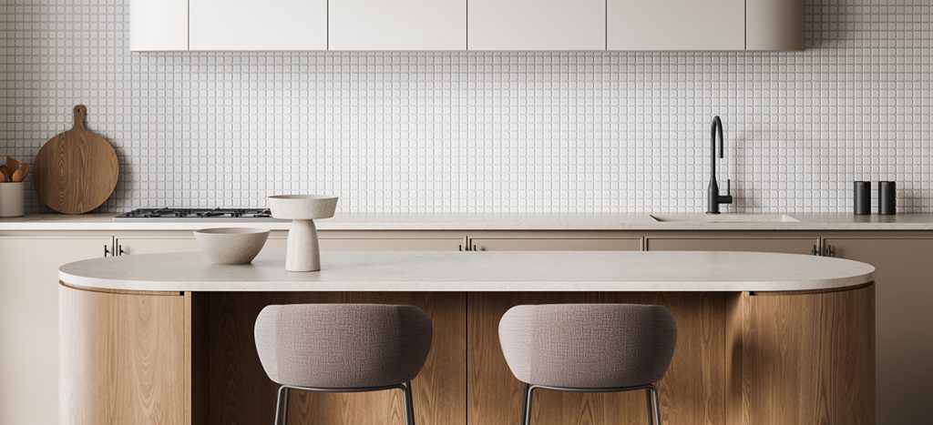 Sharp lines are giving way to softer forms in 2026 kitchen design. Curved islands, rounded benchtop edges and gently contoured details are becoming more common, especially in open-plan homes.